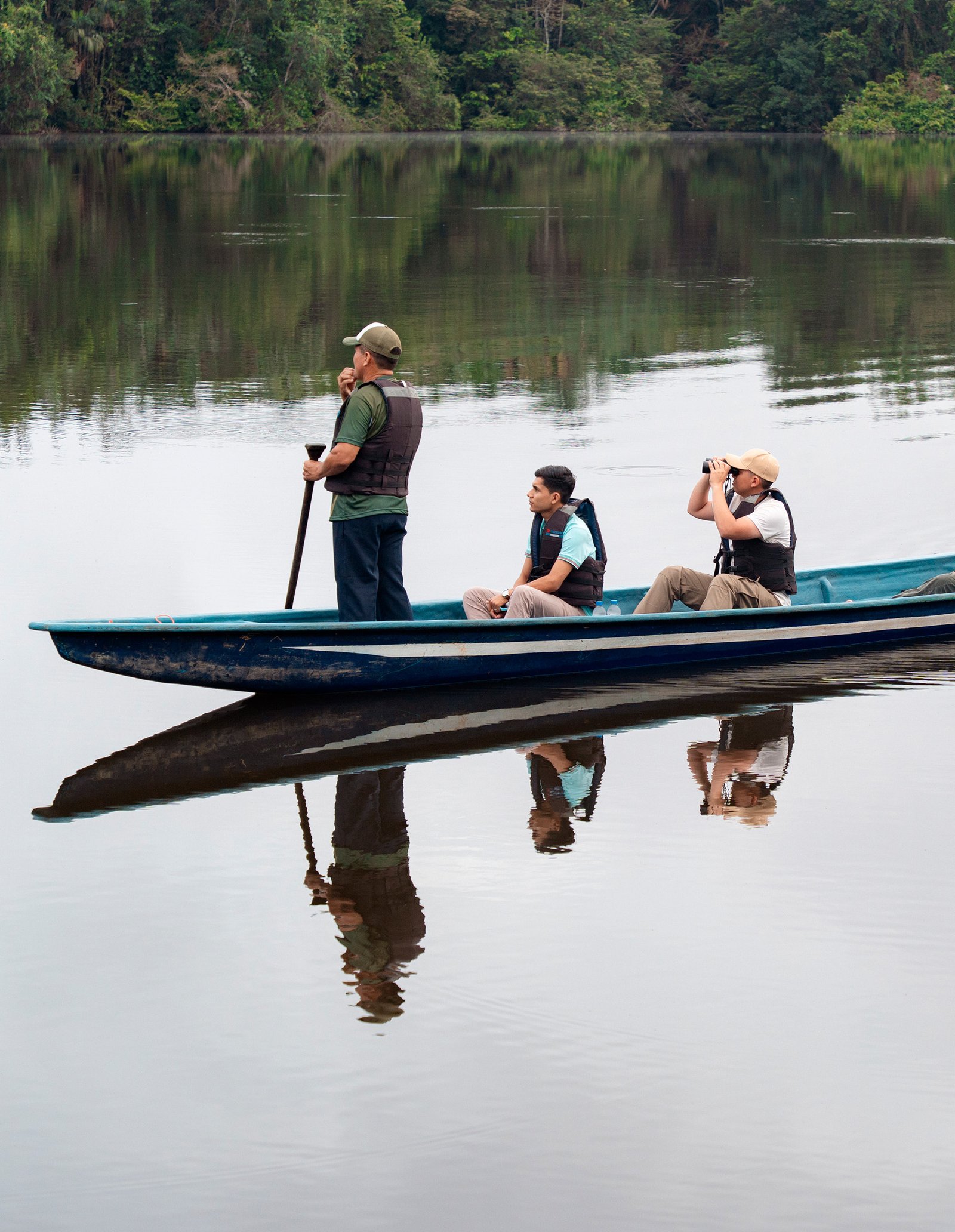 Guiados por expertos locales y con la luz de las linternas reflejándose en el agua, podrás observar los brillantes ojos de este fascinante reptil y conocer más sobre su comportamiento en su hábitat natural. Es una experiencia única que combina emoción, respeto por la fauna silvestre y un contacto cercano con la vida nocturna de la Amazonía.
